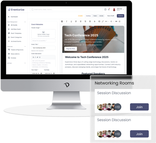 Customize each event dynamically by populating specific event details, speakers, sessions, and more.